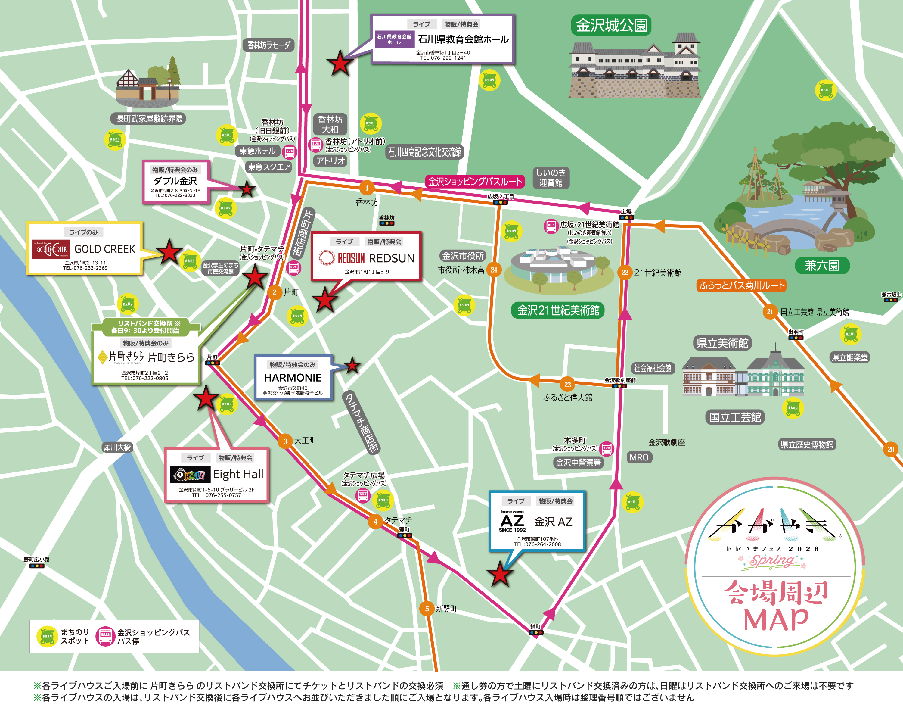- ※必ずリストバンド交換後に、各会場へお越しください。