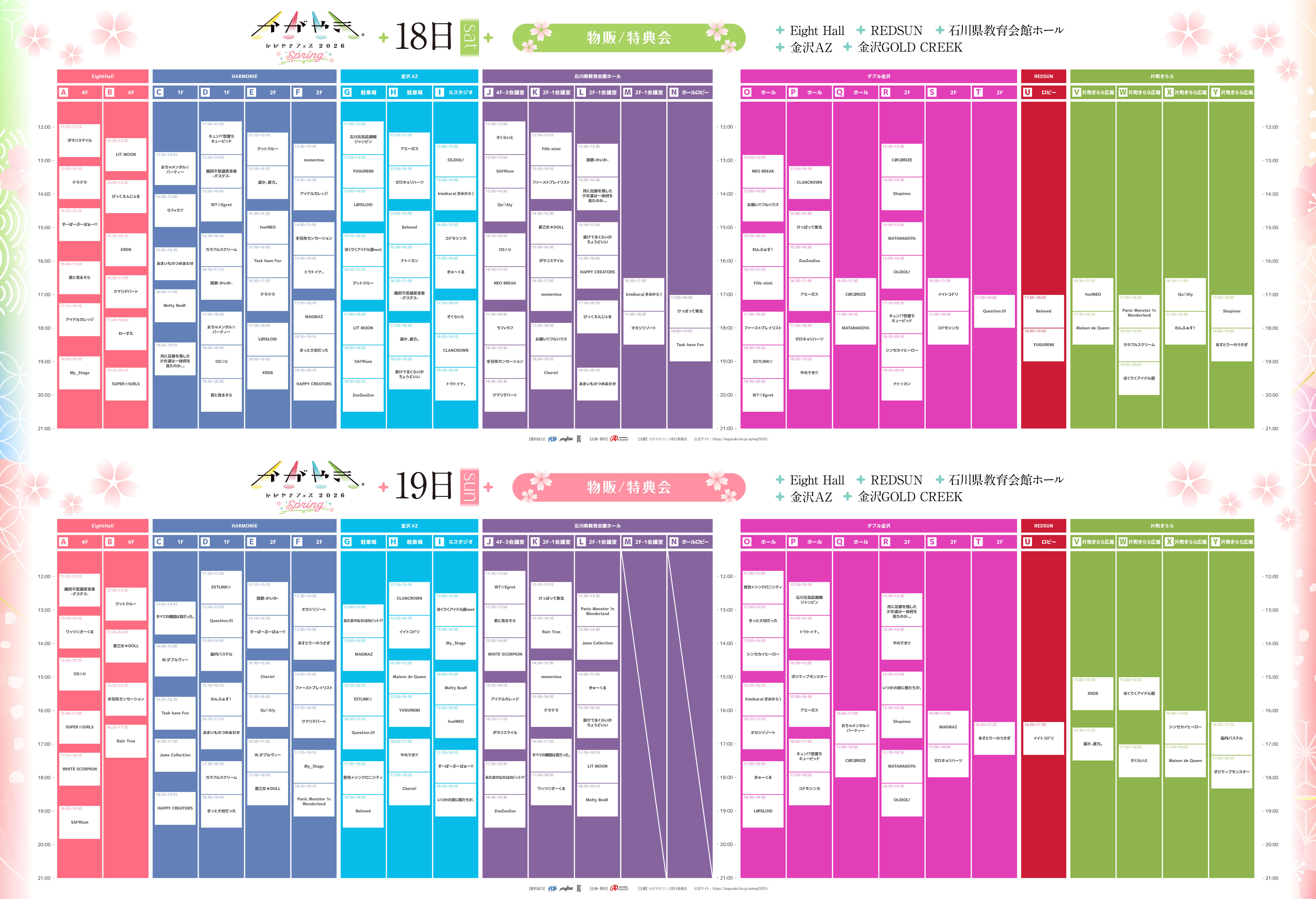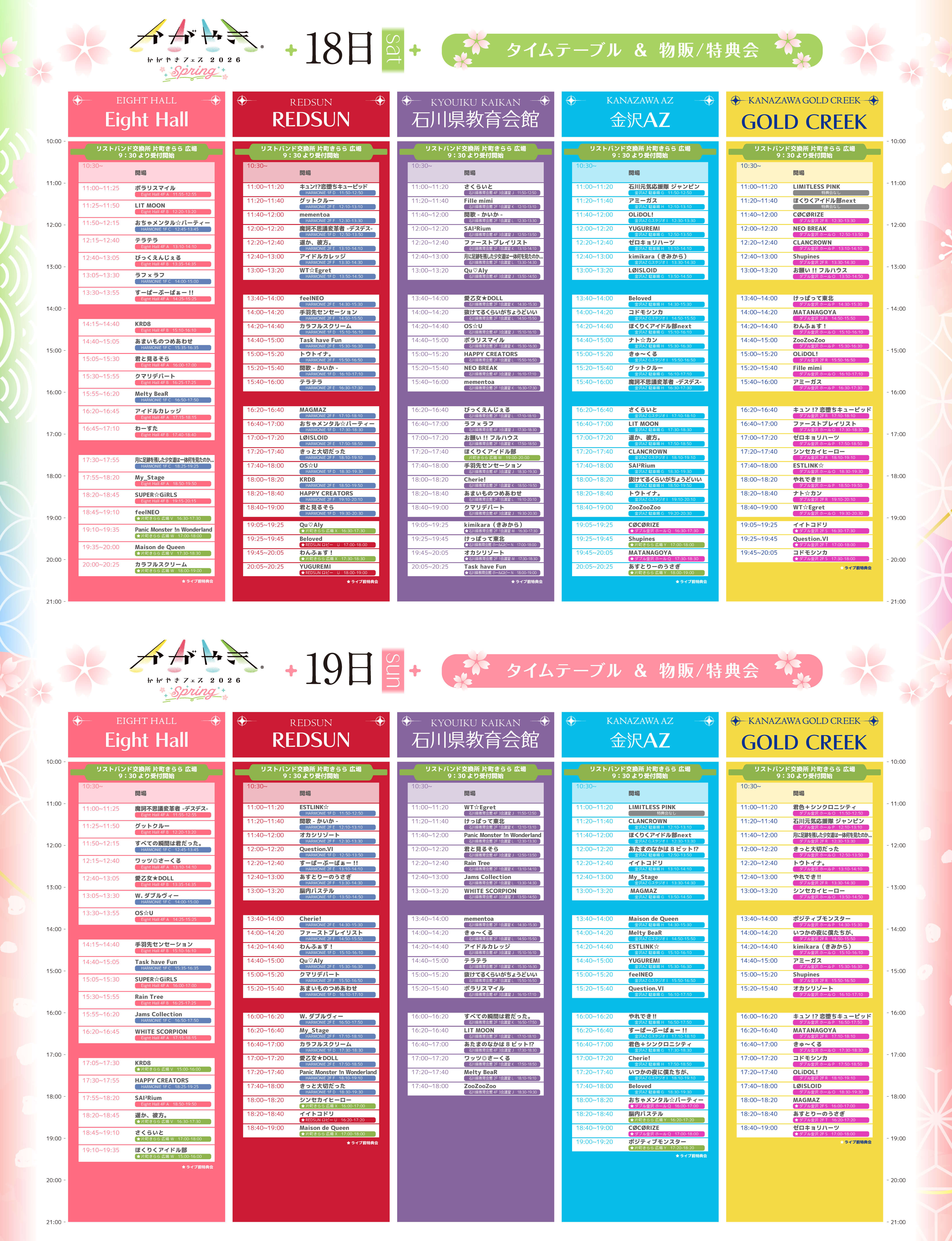 - ※各ライブハウスご入場前に片町きららのリストバンド交換所にてチケットとリストバンドの交換必須(9:30~受付開始予定)